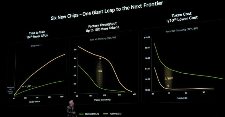 六颗芯片组合成VeraRubinNVL72系统。