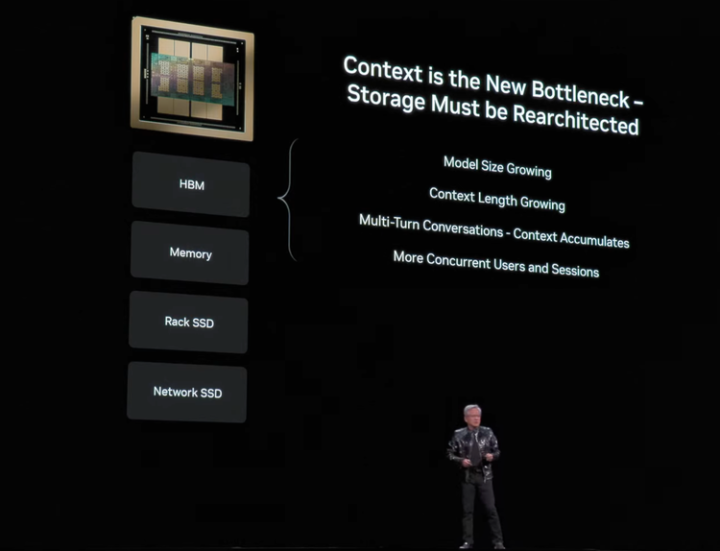 黄仁勋特别强调了一个正在浮现的问题:contextmemory正在成为新的瓶颈。