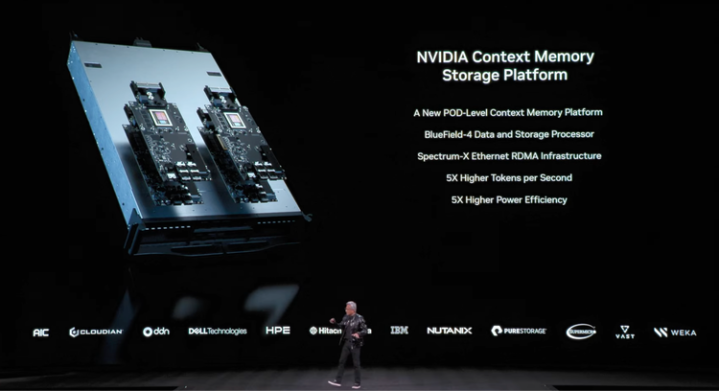 配合新的ContextMemoryStoragePlatform,可以为每个节点提供150TB的KVcache存储。黄仁勋称之为“完全革命性的”。