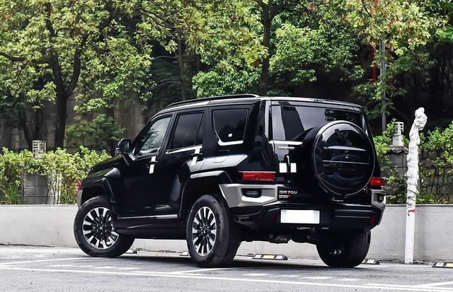 车尾设计将硬派基因与运动质感完美融合,外挂式全尺寸备胎罩上印有“GWM TANK”醒目标识,既是越野车型的标志性元素,又极具视觉辨识度,宛如越野老炮的定制座驾。车顶夸张的固定式尾翼不仅提升了空气动力学性能,更强化了整车的运动气息,让车尾层次感更为丰富。熏黑处理的尾灯组造型精巧,内部立体结构在夜间点亮后辨识度拉满,与车头大灯形成呼应。尾门采用侧向开启方式,虽在取放后排物品时略有不便,但契合硬派越野的设计调性。下包围配备激进风格的扩散器,整体造型既符合越野爱好者的审美。